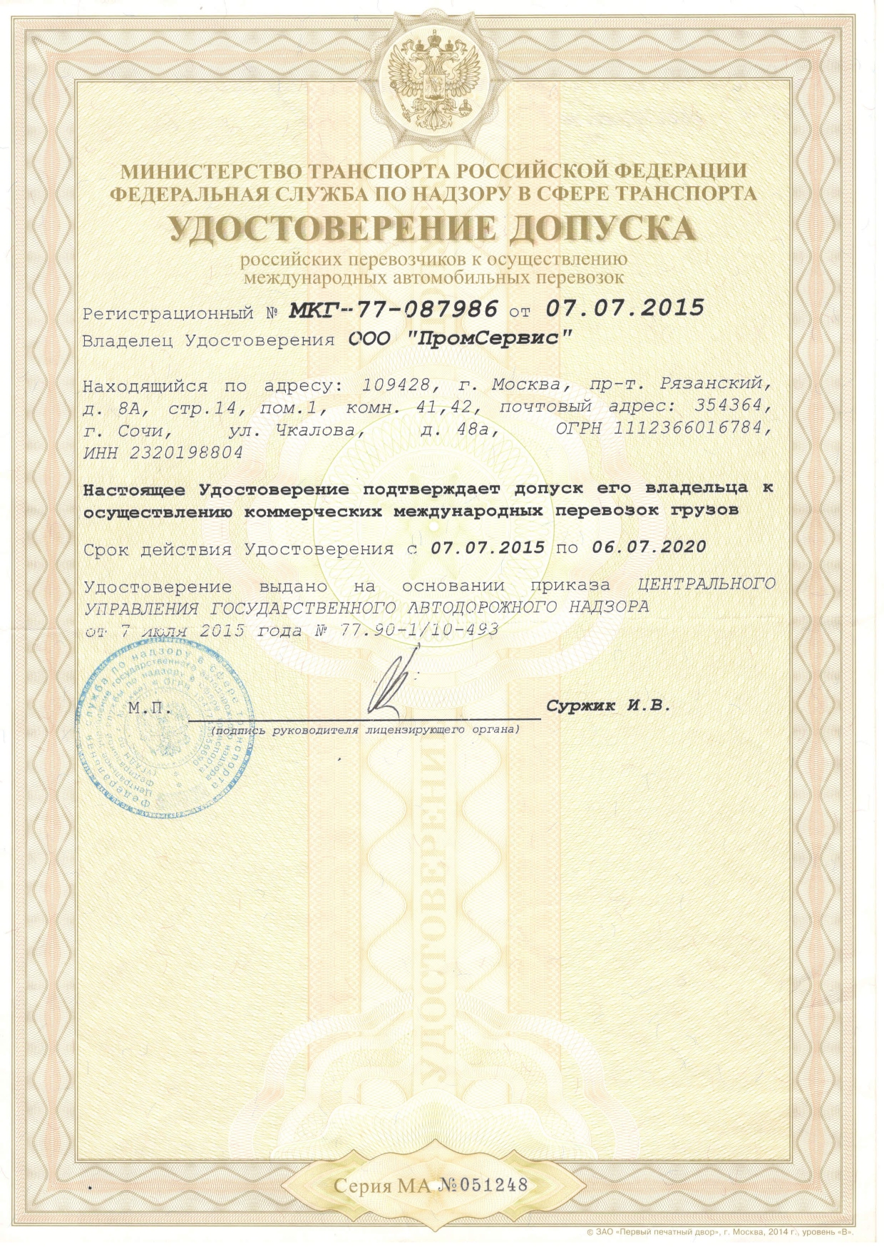 российских перевозчиков к осуществлению международных автомобильных перевозок